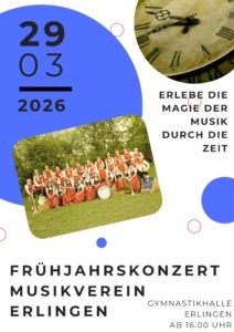 Am 29. März 2026 lädt der Musikverein Erlingen herzlich zum diesjährigen Frühjahrskonzert ein. Unter dem Motto „Erlebe die Magie der Musik durch die Zeit“ erwartet die Besucherinnen und Besucher ein abwechslungsreiches musikalisches Programm, das durch verschiedene Epochen und Stilrichtungen führt.